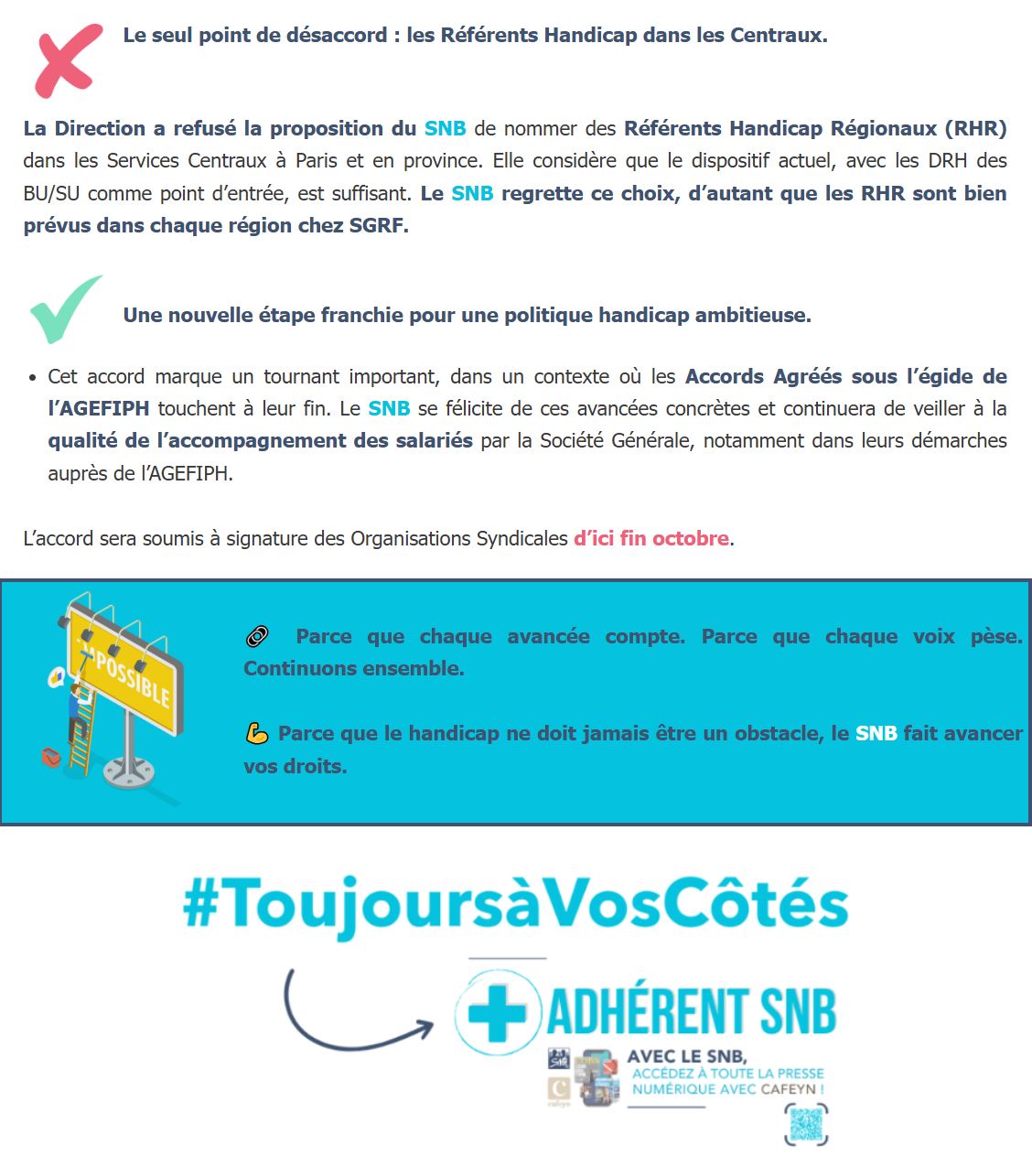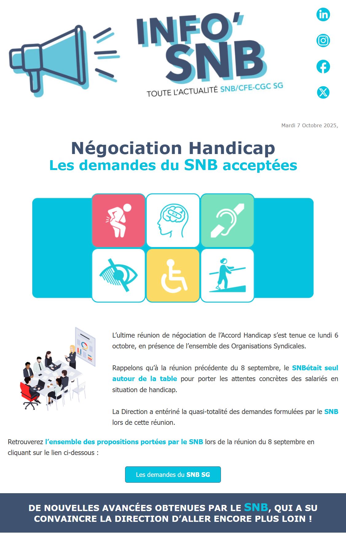 ACCORD HANDICAP : LES DEMANDES DU SNB ACCEPTEES