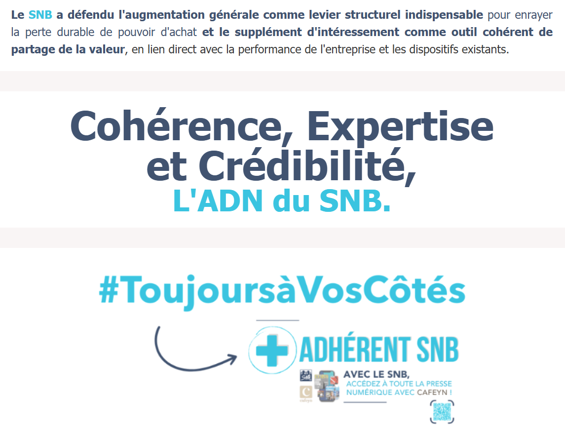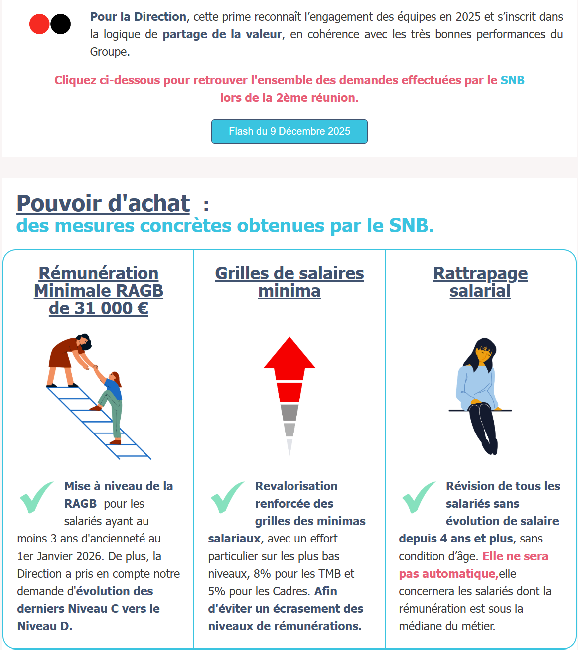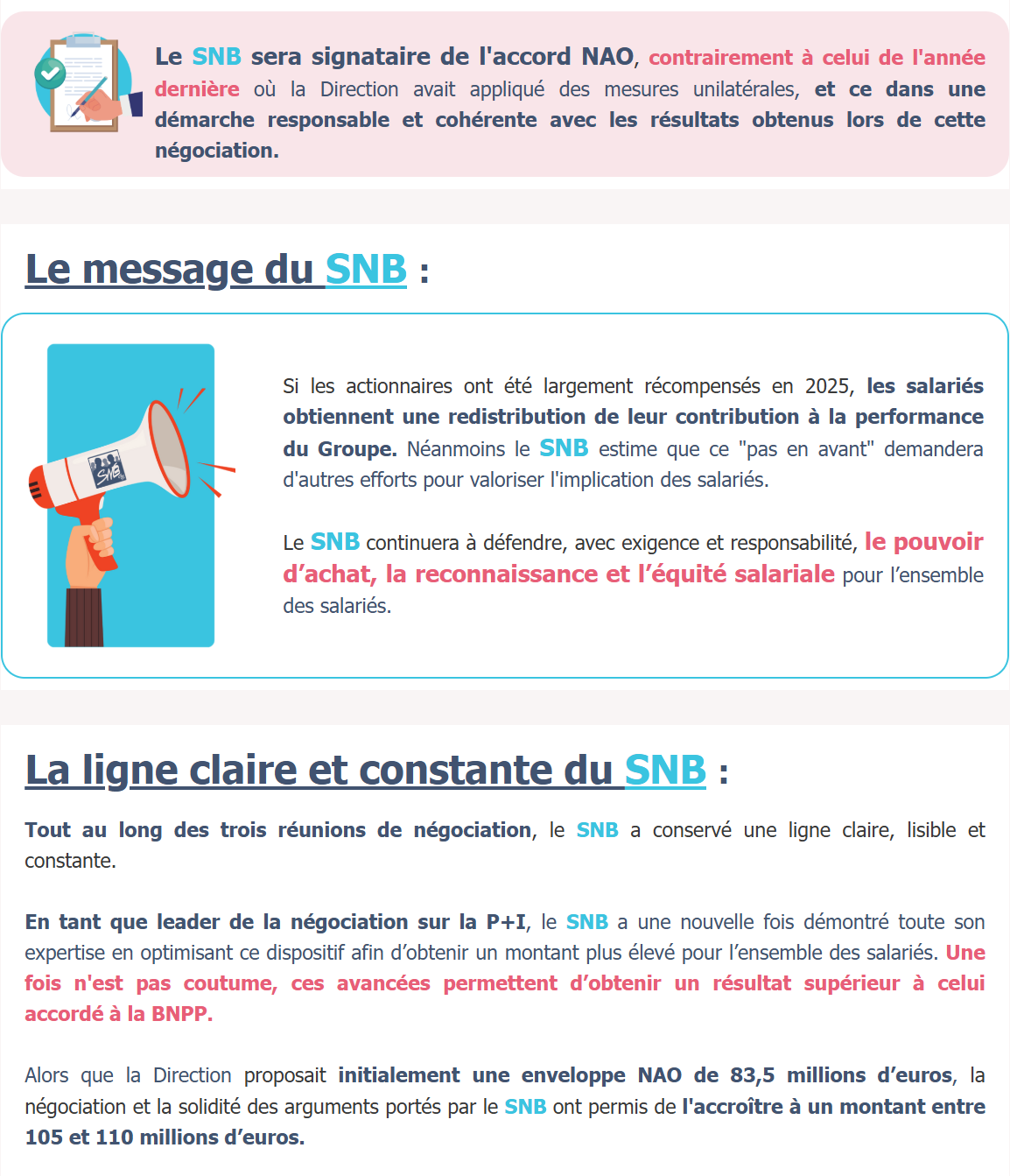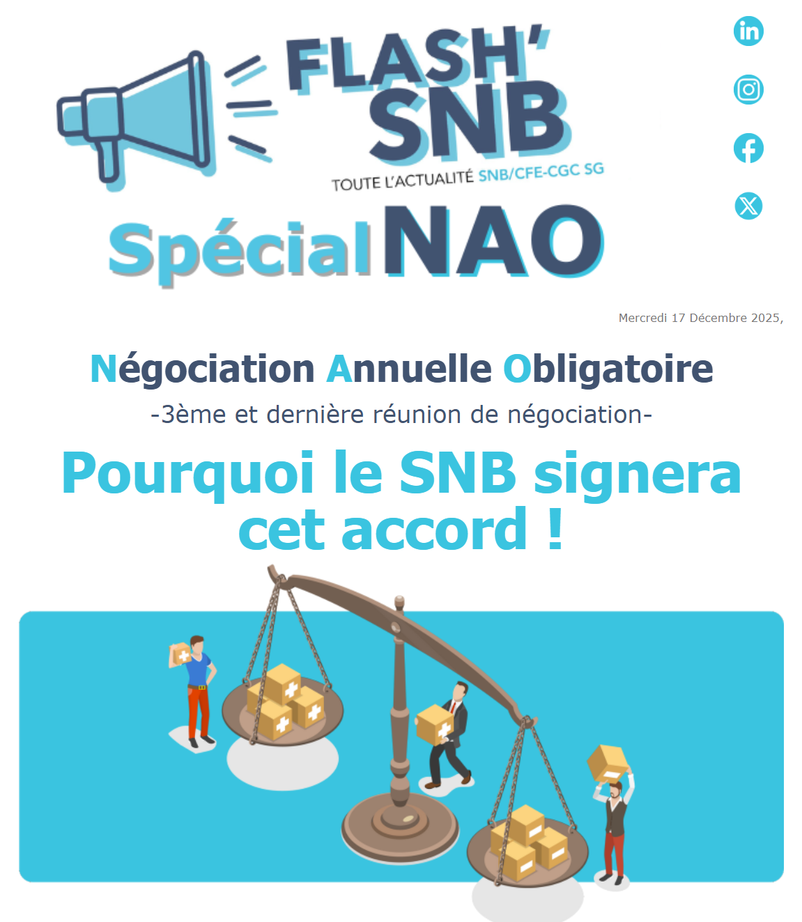 NAO : Pourquoi le SNB signera cet accord ! 17 décembre 2025|Actualité Centraux, Actualité Réseaux, Actualités, Centraux, Réseau| Partagez cette info ! FacebookXLinkedInEmail Articles similaires ACCORD EMPLOI : Le SNB sera signataire ✍️ 12 décembre 2025 N.A.O : Pour le SNB les salariés méritent PLUS ! 9 décembre 2025 N.A.O : 1ère Réunion 💶 3 décembre 2025 En direct du CSEC Novembre 2025 : Comptes-Rendus des Commissions 28 novembre 2025